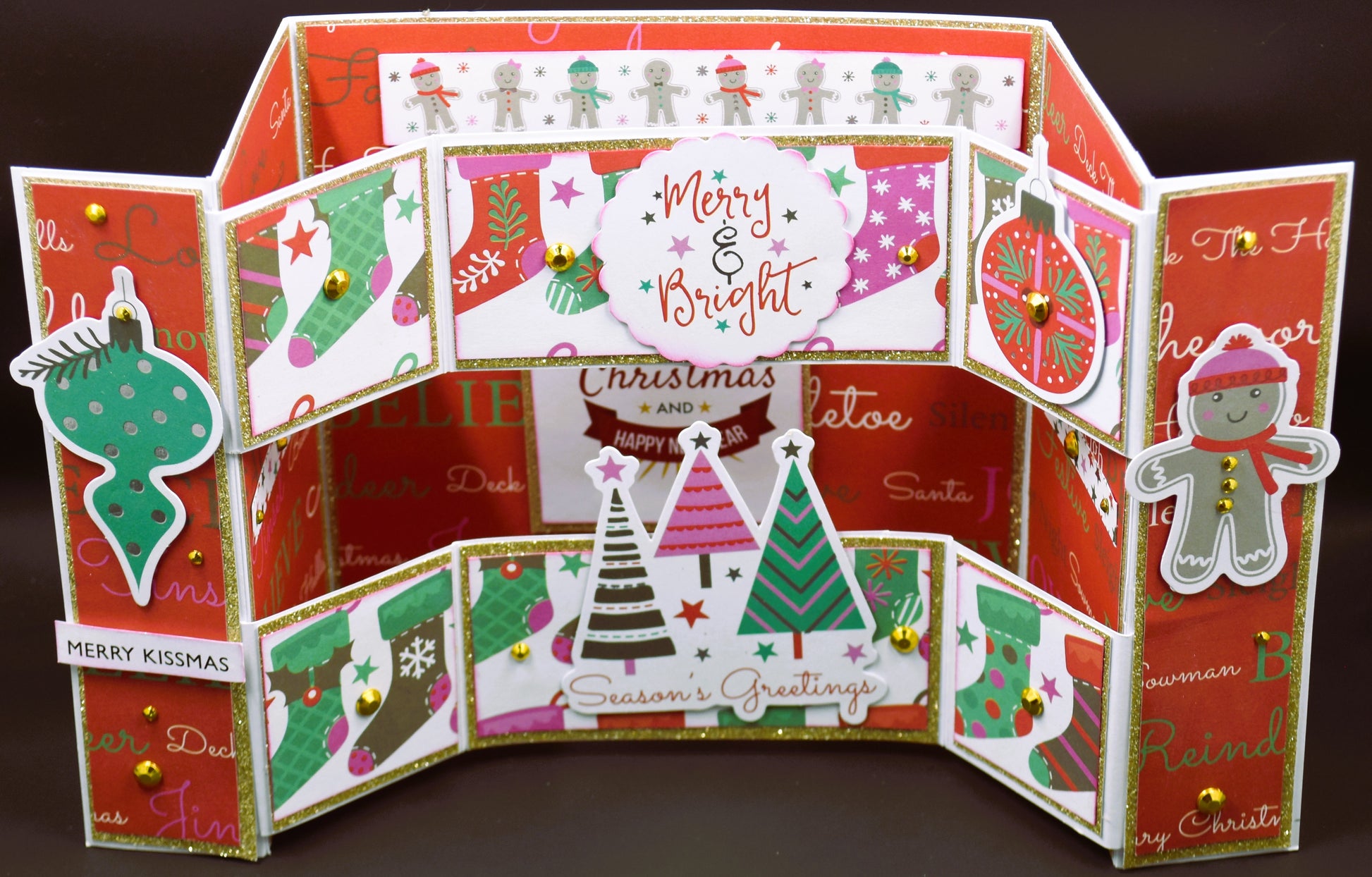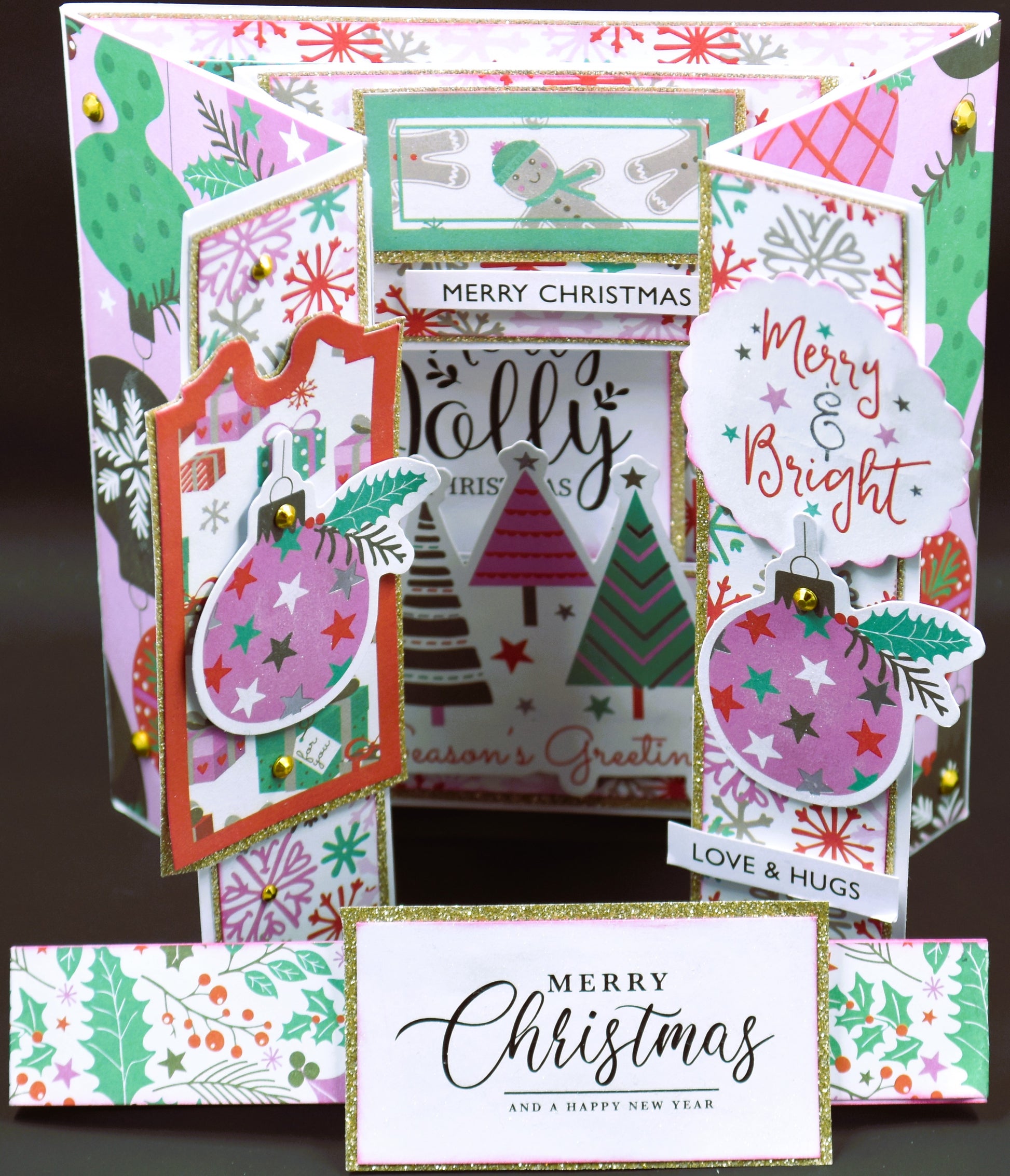 Ready to assemble card making kit featuring the Tonic Studio 12x12 Paper Pack and coordinating ephemera pack- Candy Cane Christmas. This kit has everything you need to make four double hammock cards with embellishments as well as full instructions and photos.